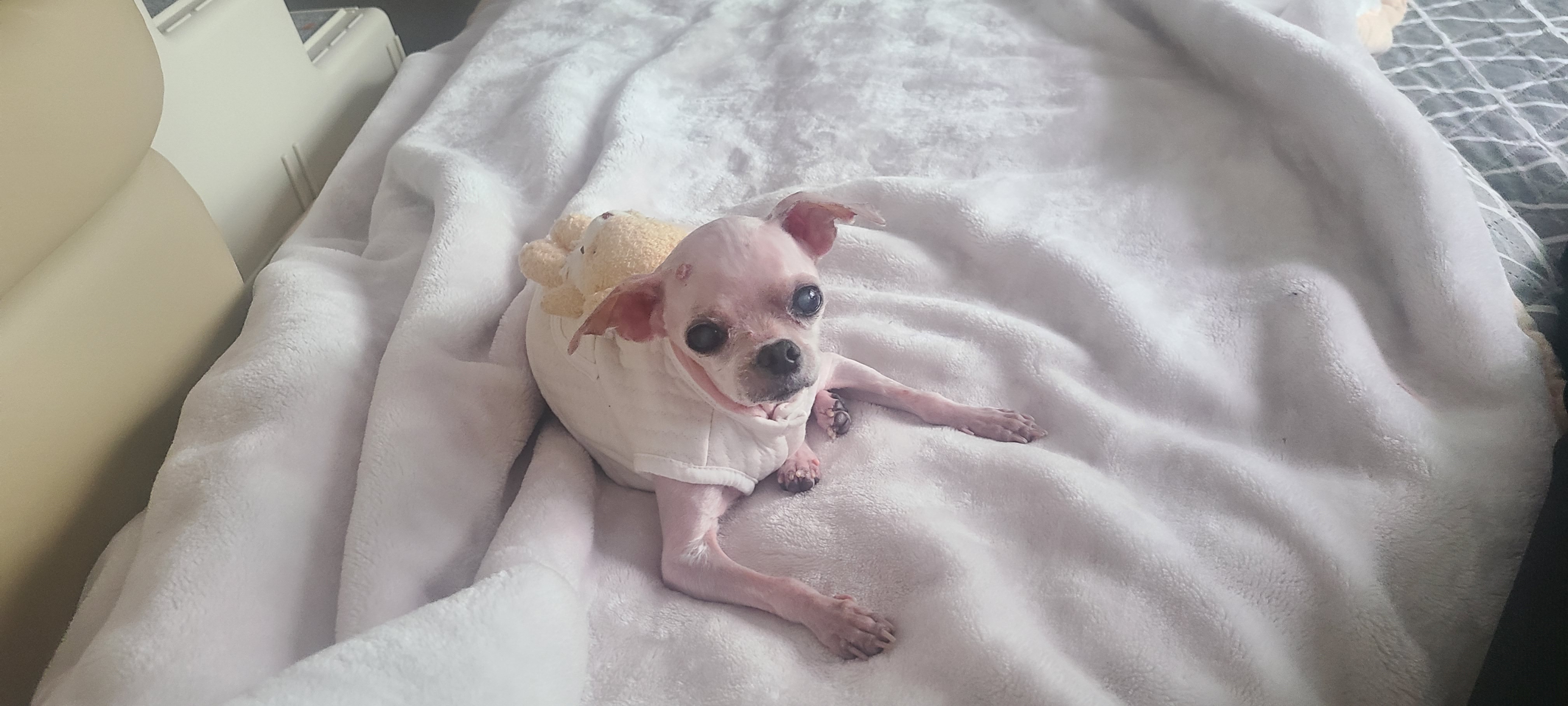 털을 밀고 씻고 나니 우리 쮸, 정말 '환골탈태' 했죠? 가렵던 피부가 시원해졌는지 목욕 후에는 기분이 한결 좋아 보여서 제 허리 통증도 싹 잊히는 기분이었어요.